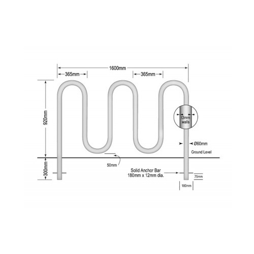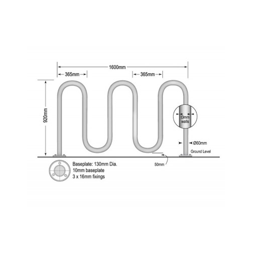 | BRK5WAVE/B | 60mm | 920mm | 1600mm | 7 Bicycles | 140mm Baseplate | 6 - 12mm x 65mm Dynabolts |